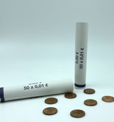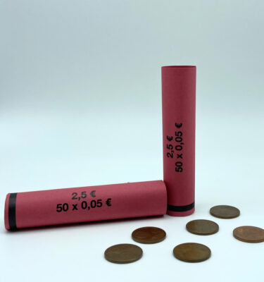 Marquage longitudinal conforme au code couleur européen de conditionnement de la monnaie. Indique la valeur faciale unitaire, le nombre de pièces et la valeur totale contenue dans l’étui.
