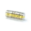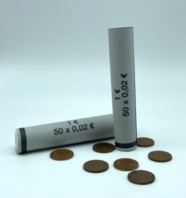 Marquage longitudinal conforme au code couleur européen de conditionnement de la monnaie. Indique la valeur faciale unitaire, le nombre de pièces et la valeur totale contenue dans l’étui.