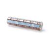 Marquage longitudinal conforme au code couleur européen de conditionnement de la monnaie. Indique la valeur faciale unitaire, le nombre de pièces et la valeur totale contenue dans l’étui.