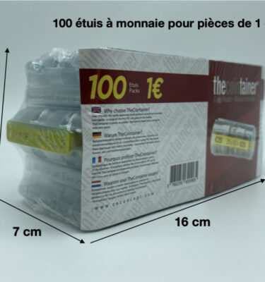 Résiste aux chocs.resiste aux chocs Le PET est particulièrement résistant aux chocs. Qui plus est, thecointainerTM est muni d’un système dabsorption des chocs. Risque réduit d’ouverture lors du transport, même fortement secoué ou heurté. Calibrage européen.calibrage européen Les différences de calibrage des pièces provenant des différents pays ont été prises en compte dans la conception des étuis thecointainerTM.